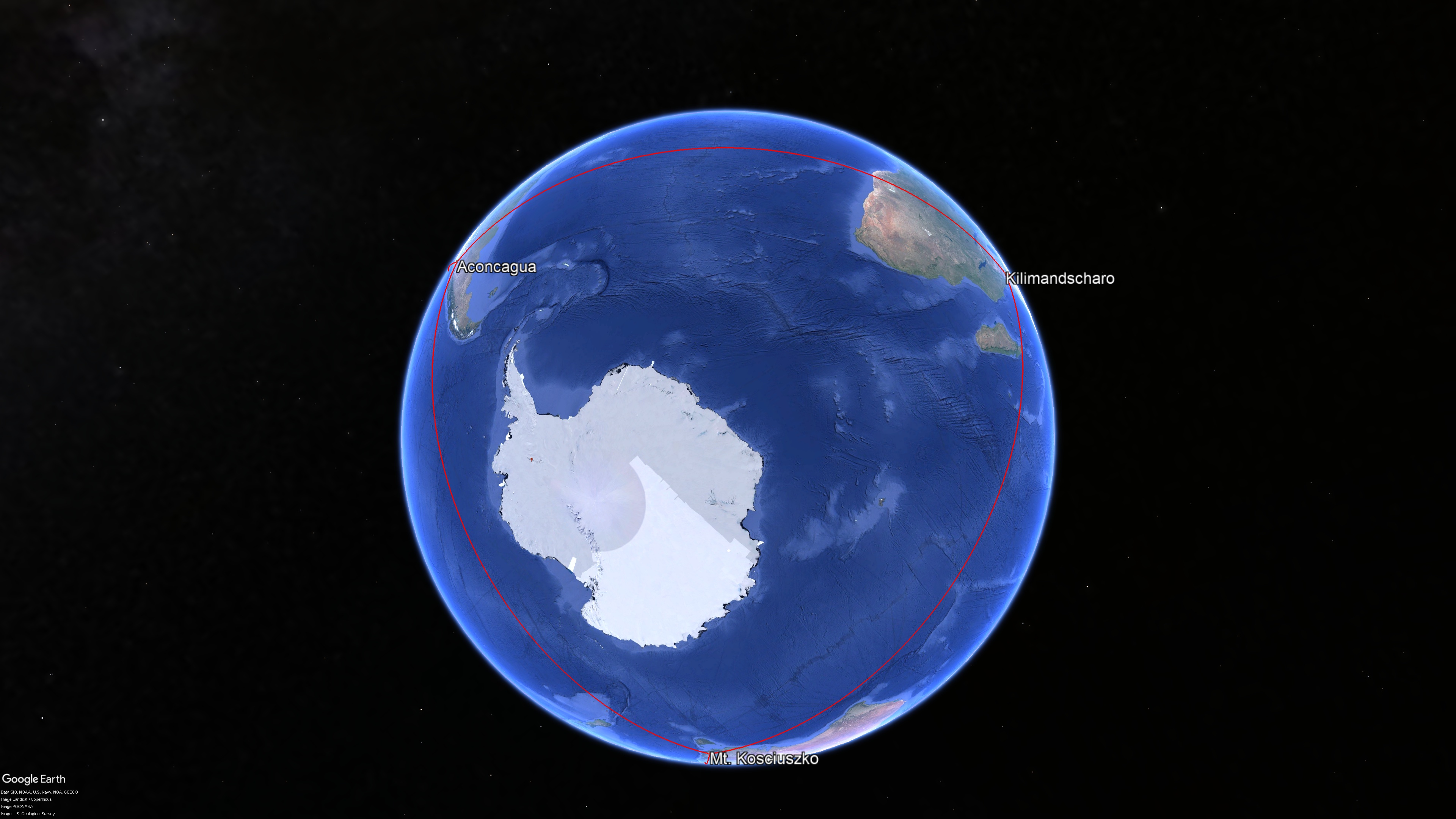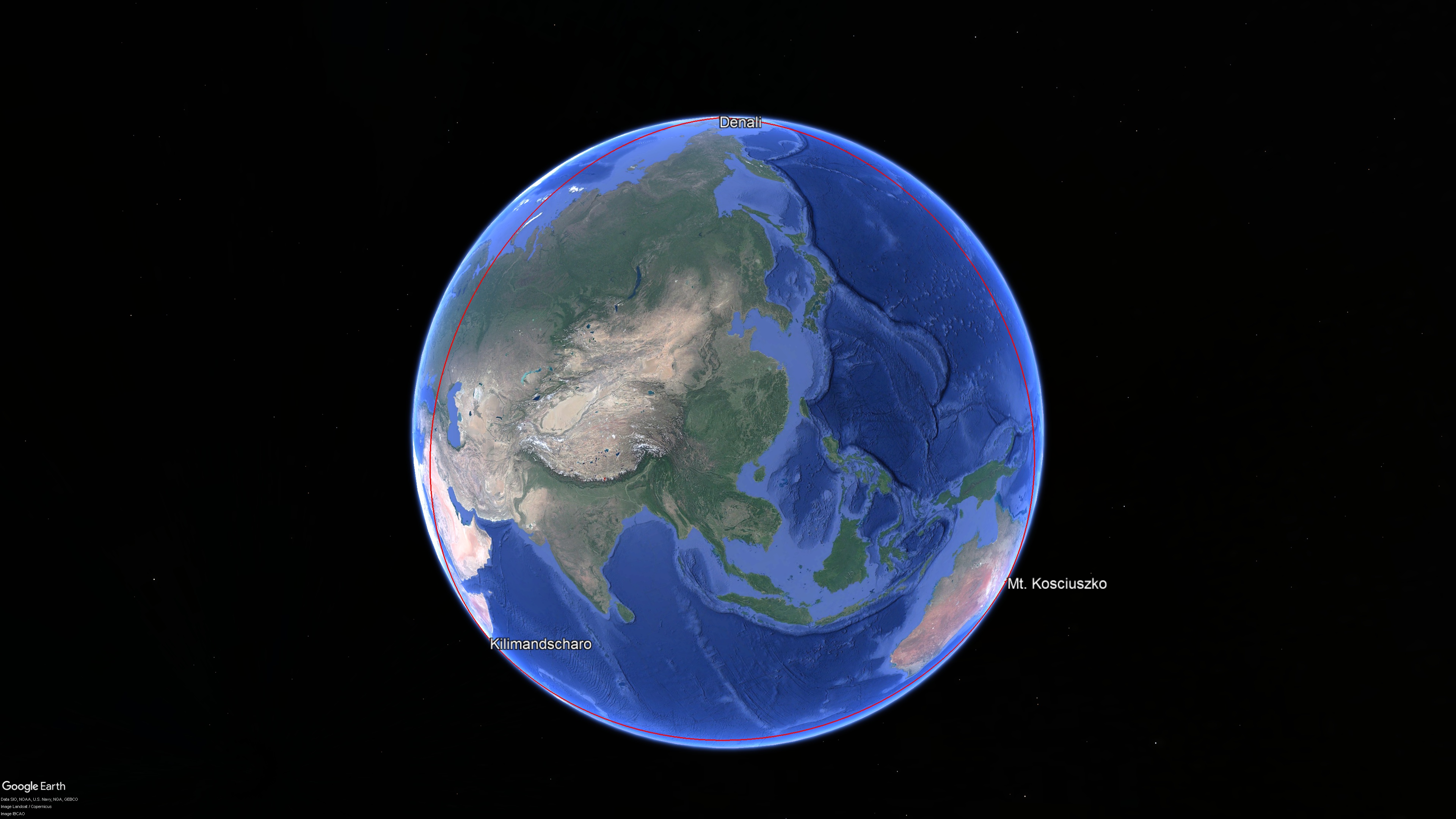 Abb. 3: Gleichseitiges Dreieck Kilimandscharo - Denali - Mt. Kosciuszko