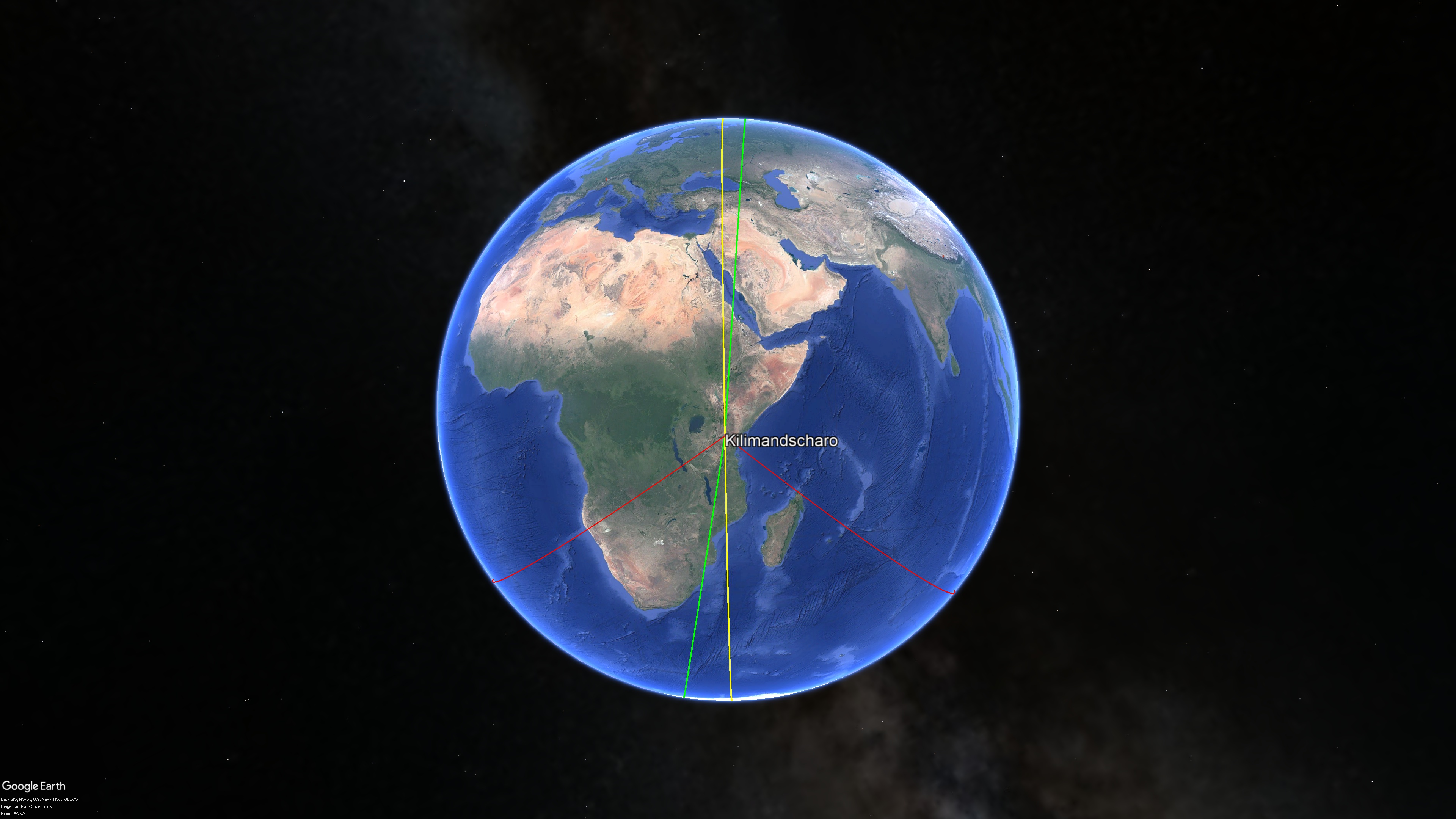 Abb. 10 Natürlicher Nullmeridian durch Kilimandscharo