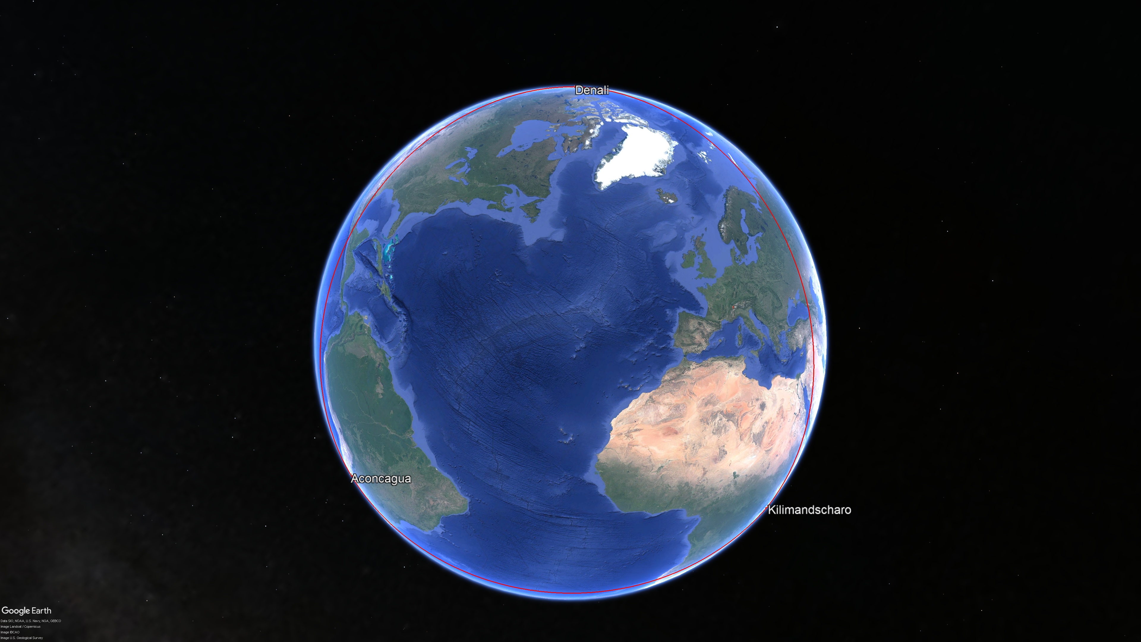 Abb. 2: Gleichseitiges Dreieck Kilimandscharo - Denali - Aconcagua