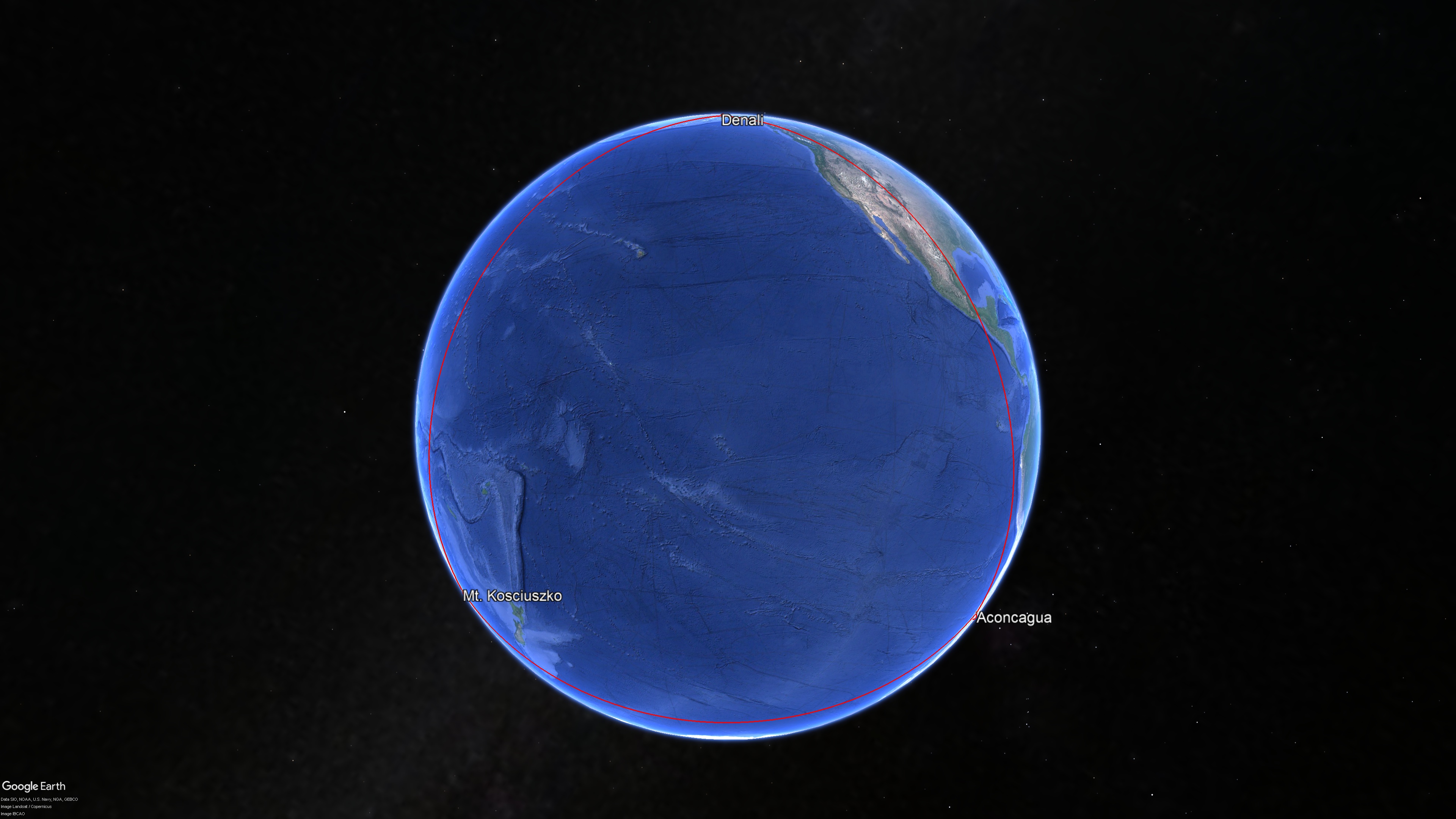- Denali \(\leftrightarrow\) Aconcagua \( 12900 \, \mathrm{km} \)