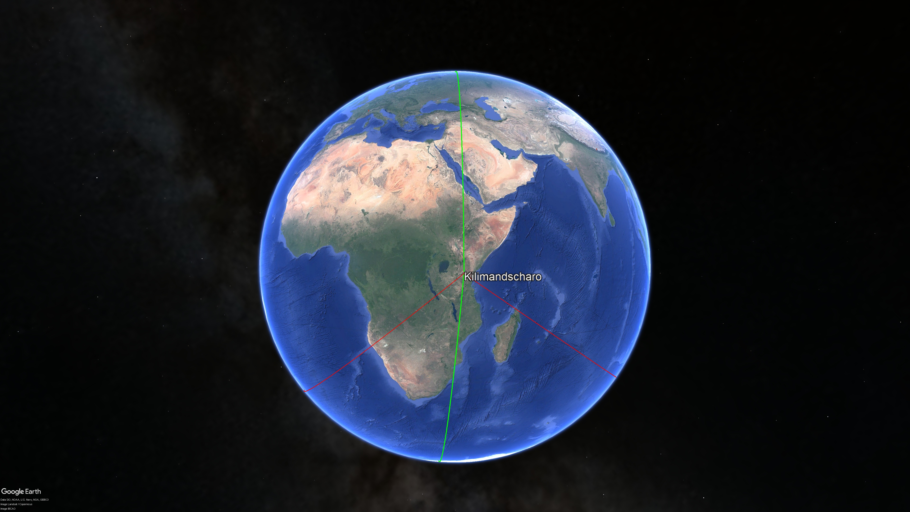 Abb. 10 Natürlicher Nullmeridian durch Kilimandscharo